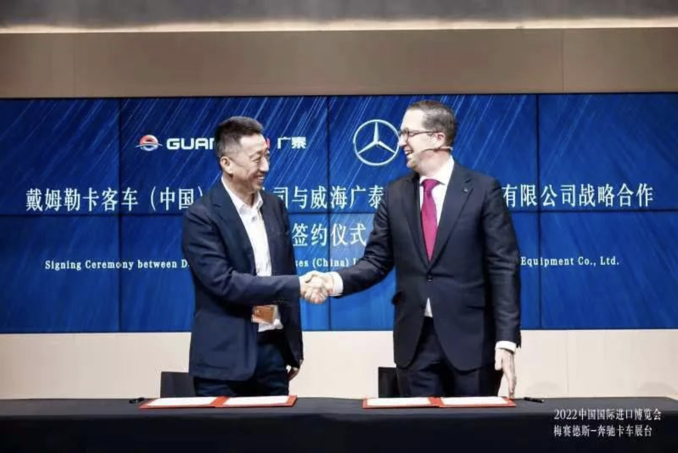 2022年11月5日,在第五屆中國國際進口博覽會現場,威海廣泰空港設備股份有限公司(以下簡稱“威海廣泰”)董事長李文軒與戴姆勒卡客車(中國)有限公司(以下簡稱“戴姆勒卡客車(中國)”)首席執行官秦坦簽訂了《戰略合作框架協議》。雙方在之前良好合作的基礎上,正式建立戰略合…