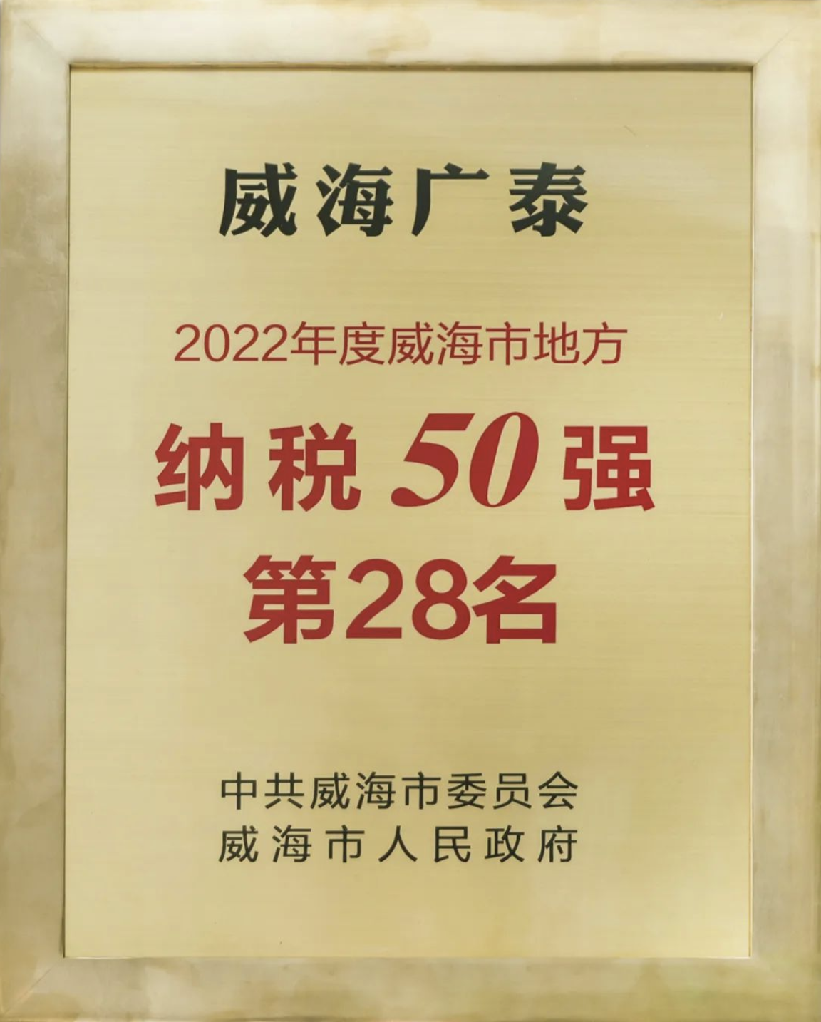 2023年1月28日,威海市2023年工作動員大會在威海國際會議中心舉行,發布《中共威海市委威海市人民政府關于表揚2022年度全市高質量發展突出貢獻企業、單位和個人的決定》,表彰2022年度全市突破百億目標企業、全市地方納稅50強企業以及招商引資先進典型。威海廣泰獲2022年度威海市地…